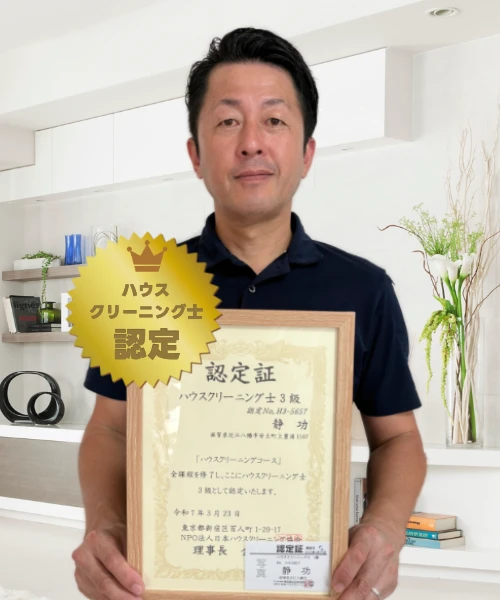 NPO法人日本ハウスクリーニング協会に加盟し、徹底した教育を受けたハウスクリーニング士がお伺いします。